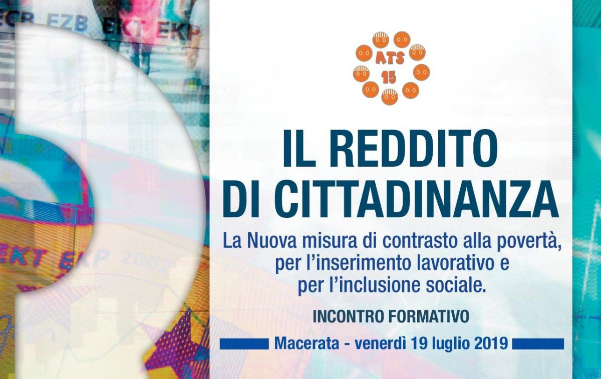 REDDITO DI CITTADINANZA - Incontro informativo 15/07/2019 Venerdì 19 luglio dalle ore 9.00 presso l'Auditorium Banca Marche, Via Padre Matteo Ricci 2 Macerata