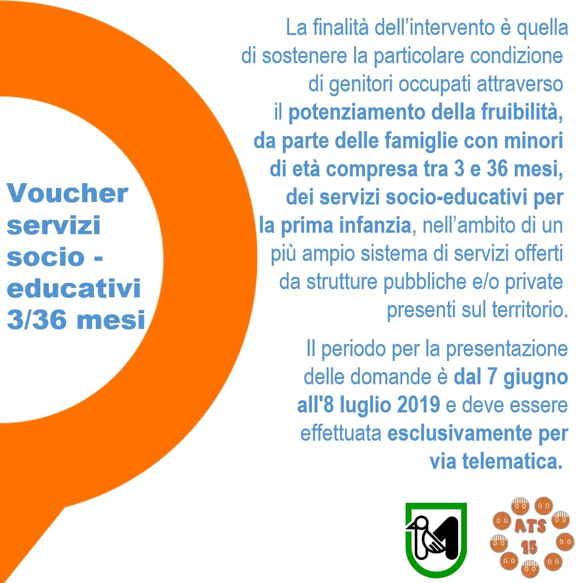 VOUCHER SERVIZI SOCIO-EDUCATIVI 3 - 36 MESI 06/06/2019 Il periodo per la presentazione delle domande è dal 7 giugno 2019 all'8 luglio 2019.