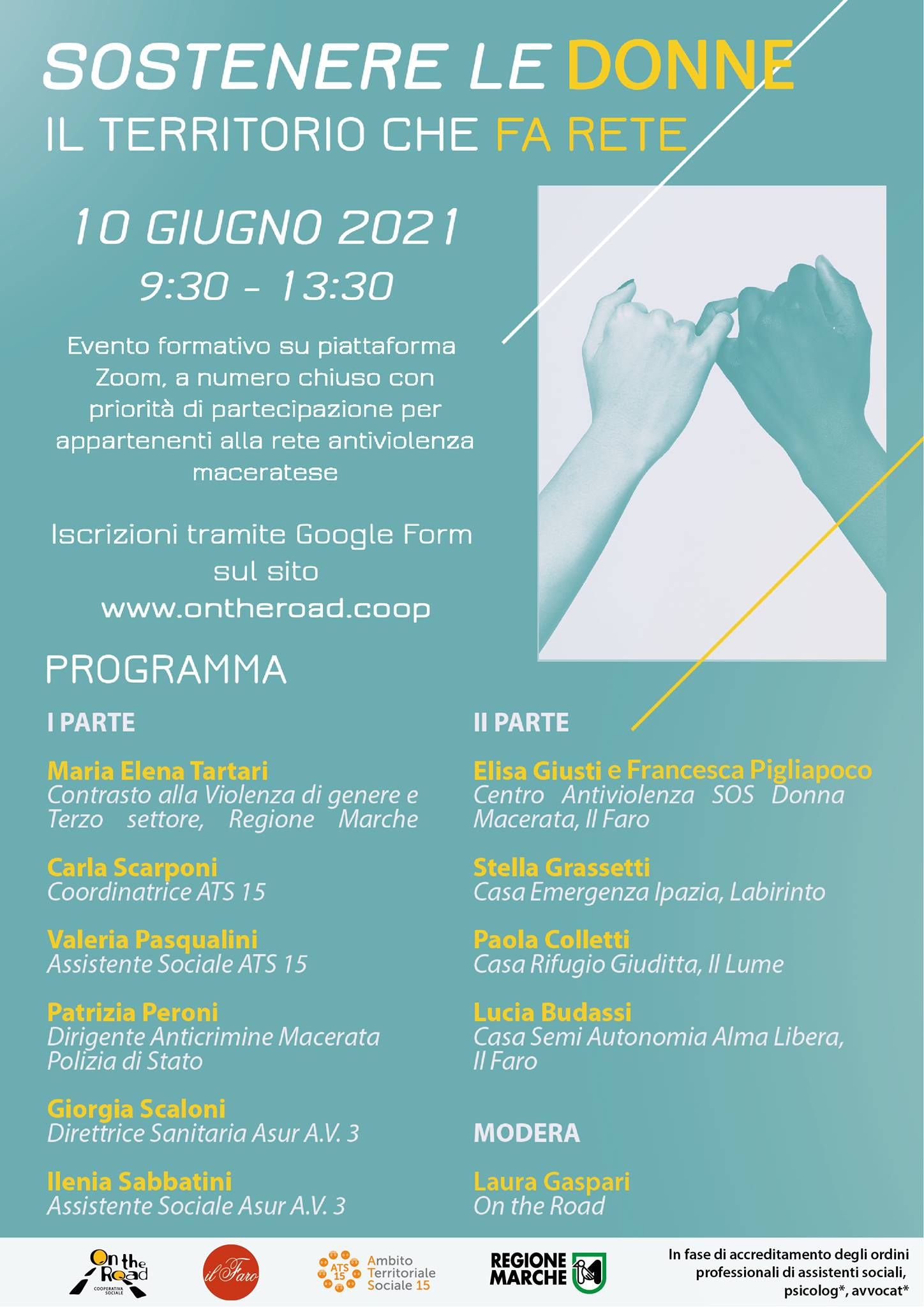 In collaborazione con l'Ambito Territoriale Sociale 15 e il Faro Società Cooperativa Sociale onlus, On the Road Società Cooperativa Sociale organizza un evento fermativo con l'obiettivo di offrire alla rete territoriale della Provincia di Macerata una formazione rispetto alle azioni di contrasto alla violenza maschile contro le donne e alle possibilità di supporti esistenti sul territorio.
